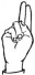 На ћирилици написано ПАУН НЕДИЋ састоји се из 9 слова [?]. Исписано ћириличном једноручном азбуком за глувонеме: